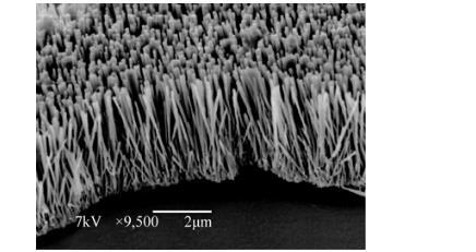 納米ZnO是一種重要的光催化材料,具有成本低廉、生物相容性較好和電子傳遞特性較高的優(yōu)點(diǎn),因此在太陽(yáng)能電池、傳感器、光電器件等方面都有廣泛應(yīng)用。本實(shí)驗(yàn)采用水熱合成法定向生長(zhǎng)ZnO納米線并用原子力顯微鏡(AFM)和掃描電鏡(SEM)對(duì)其進(jìn)行了表征,結(jié)果如圖2和圖3所示。