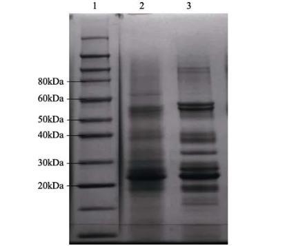 SDS-PAGE分析在NuPAGE 4%~12%Bis-Tris Mini Gel預(yù)制膠(Invitrogen,USA)上進(jìn)行。在樣品中加入NuPAGE LDS sample Buffer和NuPAGE Reducing Agent(Invitrogen),70℃加熱10 min,短暫離心后上樣,每孔道上樣20μL,200 V恒電壓電泳。凝膠用考馬斯亮藍(lán)R-250染色。