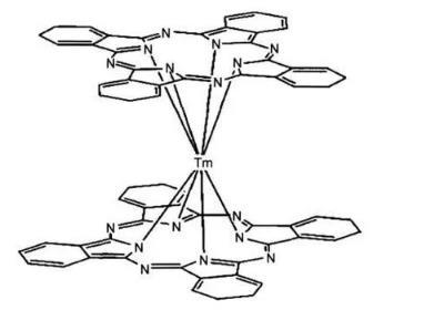 實驗所用材料是由山東大學化學化工學院姜建壯教授提供的三明治型酞菁銩化合物TmPc2,其分子結構如圖1所示。氯仿從市場購買,純度為分析純。以氯仿為溶劑,將TmPc2配制成一定濃度的溶液用于LB膜的制備。LB膜的制備在芬蘭產KSV-5000雙槽制膜系統上完成,在恒定的溫度和表面壓力下用水平提拉法制備成LB膜。