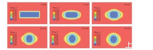圖6聚合物液滴形態隨時間演化(仿真)
