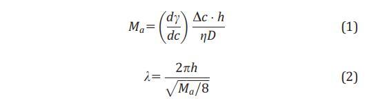為了量化溶質 Marangoni 效應,25,26,30,31 我們估計 馬蘭戈尼數 (Ma) 和馬蘭戈尼波長 (k).32