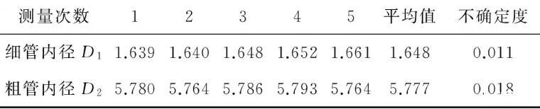 表1 U型管內(nèi)徑測(cè)量值單位:mm