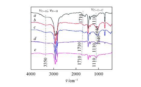 瀝青質及其亞組分的紅外光譜見圖3,由圖3可知,在3200——3400 cm-1范圍內均出現較寬的吸收峰,歸屬于締合的O—H和N—H的伸縮振動;在2922和2852 cm-1處均分別出現2個較強的吸收峰,分別歸屬于CH2的對稱和反對稱伸縮振動;在1640 cm-1處的吸收峰,由于1640和1600 cm-1間多個峰的延伸和重疊,因此很難給出此峰的準確歸屬;在1460和1380 cm-1處的吸收峰,歸屬于CH3的對稱和反對稱彎曲振動;在1040——1110 cm-1范圍內出現的吸收峰,歸屬于醚鍵的伸縮振動;在720 cm-1左右出現的吸附峰,歸屬于CH2的平面搖擺振動。