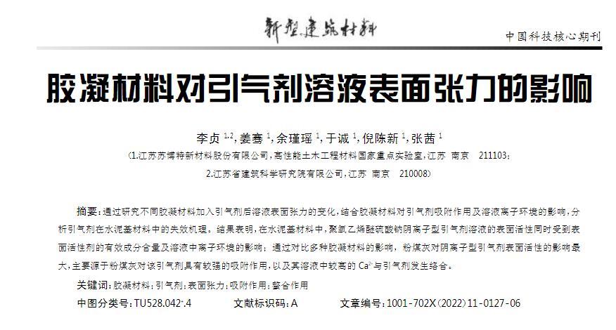 本文研究了混凝土中常用的膠凝材料組分(水泥、粉煤灰、礦粉、硅灰)對引氣劑引氣作用失效的影響機制,根據(jù)溶液表面張力的變化評價引氣劑在不同膠凝材料水泥基材料中的起泡性能。
