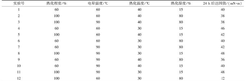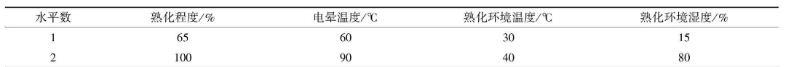 表2熟化前電暈影響因素正交試驗設計