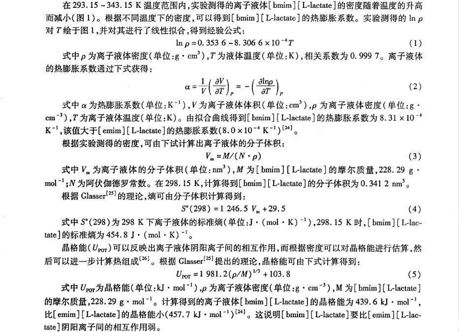 根據(jù)實(shí)驗(yàn)測(cè)得的密度,可由下試計(jì)算出離子液體的分子體積: