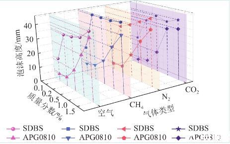 圖8不同氣體注入表面活性劑后泡沫高度隨溶液質(zhì)量分?jǐn)?shù)變化