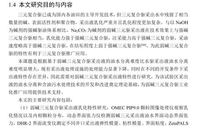 弱堿三元復合驅采出液中殘留了相當數量的堿、表面活性劑和聚合物,油水乳化嚴重且多種乳狀液并存,造成油水分離困難。弱堿三元驅采出液處理技術的研究對弱堿三元采出液油水分離工藝及操作參數的選擇奠定了理論基礎,有利于弱堿三元復合驅在油田中的應用。