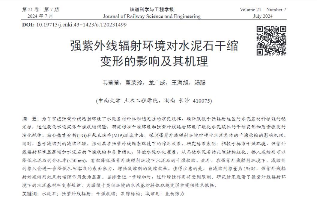 當摻量進一步增加時,這種增強作用將受到限制。研究結果厘清了強紫外線輻射環(huán)境下的水泥基材料變形規(guī)律,為服役于類似環(huán)境的水泥基材料體積穩(wěn)定調控提供技術依據(jù)。