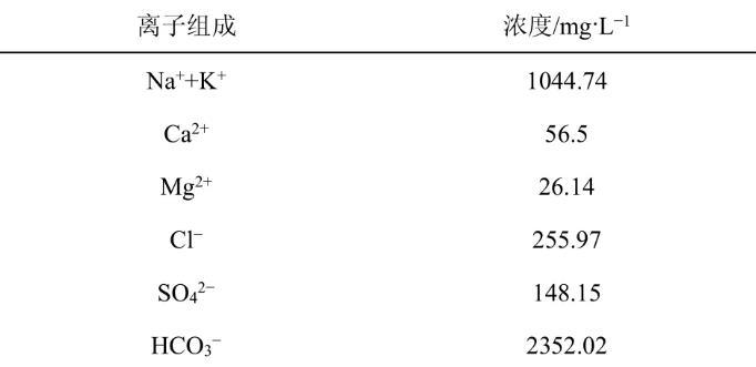 實驗用水:大慶采油二廠污水,總礦化度為3883.52mg/L,水質分析見表1。