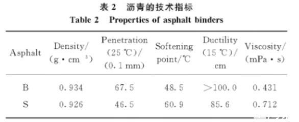 純度1)99.5%的無水乙醇(分析純);70#基質瀝青(B);SBS改性瀝青(S);5種表面活性劑:阿科瑪Cecabase 945(W1)、阿科瑪Cecabase Bio 10(W2)、諾力昂Rediset LQ-1102C(W3)、上海龍孚LYE-WMA(W4)、美德維實偉克M-1(W5),表面活性劑W1——W5摻量分別為瀝青質量的0.4%、0.4%、0.6%、0.6%、0.6%.瀝青的技術指標見表2,其中:黏度采用布式旋轉黏度法測試,取剪切速率為25s-1時的黏度值;基質瀝青、SBS改性瀝青的密度與黏度的測試溫度分別為135、165℃。