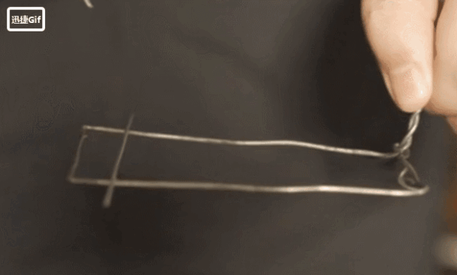 動圖中的鐵絲本來同時受到兩側肥皂膜的吸引,而當一側的肥皂膜被刺破時,鐵絲立馬滾向另一側,而吸引著它滾動的正是存在于肥皂膜表面的拉力—表面張力。