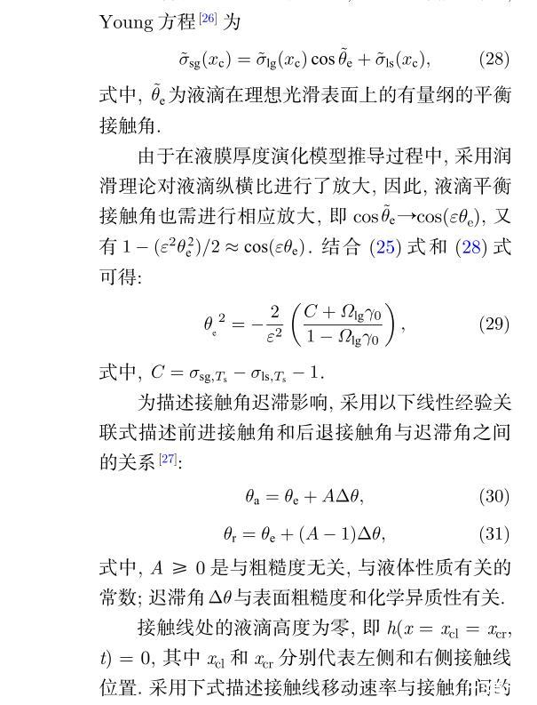 采用積分法可得液滴厚度的演化方程為