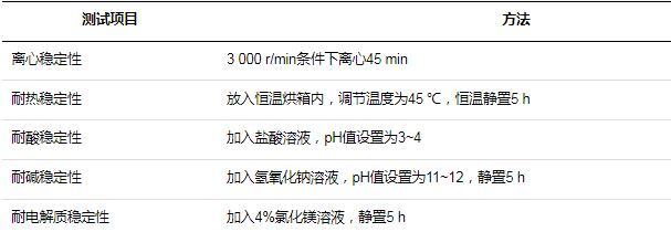 氨基改性硅油柔軟劑根據(jù)紡織物處理需要的不同,接觸到酸堿度、溫度等條件都不同,而無論是什么樣的條件,都要求氨基改性硅油柔軟劑具有極強(qiáng)的穩(wěn)定性,不能出現(xiàn)水油分離現(xiàn)象。測試項(xiàng)目如表3所示。