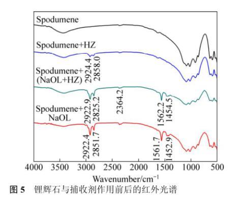 圖5鋰輝石與捕收劑作用前后的紅外光譜