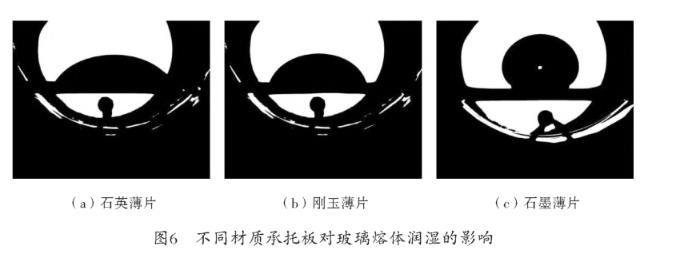 圖6不同材質承托板對玻璃熔體潤濕的影響