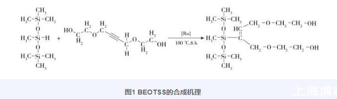 丁炔二醇乙氧基化物(BEO)分子結(jié)構(gòu)中含有炔基和兩個(gè)醇羥基,具有低泡和潤(rùn)濕性好的優(yōu)點(diǎn),在涂料工業(yè)中可配合三硅氧烷表面活性劑作為潤(rùn)濕劑和流平劑。由于BEO分子中具有不飽和的炔基,可與七甲基三硅氧烷及含氫聚硅氧烷發(fā)生硅氫加成反應(yīng),合成具有兩條親水基團(tuán)的有機(jī)硅表面活性劑。所得產(chǎn)物結(jié)合了有機(jī)硅表面活性劑和炔二醇表面活性劑的優(yōu)點(diǎn),在消泡性、潤(rùn)濕性、耐水解性方面更有優(yōu)勢(shì),近年來逐漸受到研究者的關(guān)注。