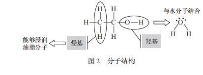 液滴爆炸現(xiàn)象的第一個(gè)階段混合液滴在疏水性物質(zhì)上先擴(kuò)散后停止,為解釋這一階段,先從分子結(jié)構(gòu)入手。乙醇是一種弱極性分子,乙醇中的羥基親水,烴基親油。宏觀上乙醇在油表面的接觸角小于90°,因此乙醇可以在油表面擴(kuò)散,也就是說(shuō)當(dāng)混合液體中酒精濃度超過(guò)某一閾值,液滴擴(kuò)散。當(dāng)酒精蒸發(fā)時(shí),液滴外圍變得富含水,外圍局部酒精濃度小于閾值,擴(kuò)散停止。