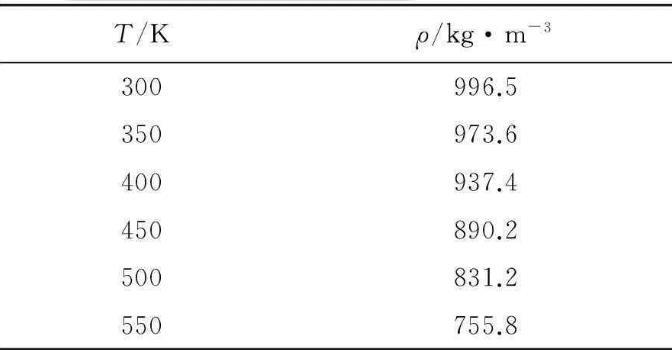 不同溫度下純水的初始密度如表2所示。