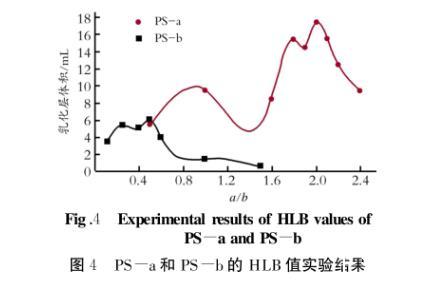 圖4 PS-a和PS-b的HLB值實驗結果