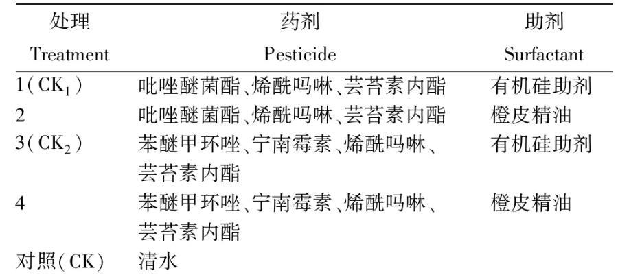 1.1.1藥劑防治辣椒病害常用的5種農藥和6種表面活性劑的相關信息詳見表1。