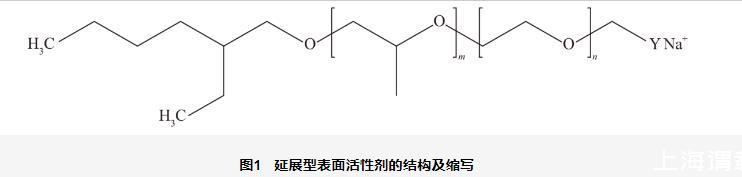 烷基氧丙烯氧乙烯羧酸鹽(APEC)系列表面活性劑:C8P5E5C、C8P5E10C、C8P5E15C、C8P10E5C、C8P10E10C、C8P10E15C、C8P15E5C、C8P15E10C、C8P15E15C;烷基氧丙烯氧乙烯羧酸鹽(APES)系列表面活性劑:C8P10E5S、C8P15E5S、C8P15E10S,中國科學院理化技術研究所合成,活性物有效含量>85%。結構及縮寫見圖1。