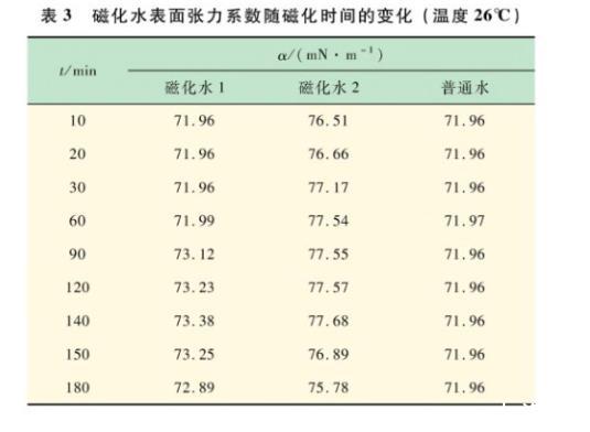 表3磁化水表面張力系數(shù)隨磁化時間的變化(溫度26℃)