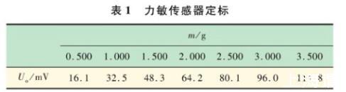 力敏傳感器上分別加各種砝碼,測出相應(yīng)的電壓輸出值,實驗結(jié)果見表1。