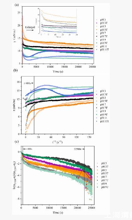 數(shù)據(jù)采集:平衡后,軟件自動記錄穩(wěn)定的界面張力值(γ),每個pH條件重復(fù)測量3次(更換新鮮樣品),取平均值。