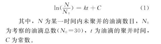 其中,N為某一時間內(nèi)未聚并的油滴數(shù)目,N0為考察的油滴總數(shù)(N0=30),t為油滴的聚并時間,C為常數(shù)。