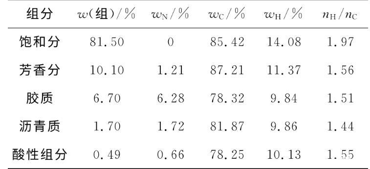 1.2.2原油組分元素分析用ElementarVario EL(Germany)元素分析儀器測定原油中各組分元素的質量分數(shù),結果見表2。