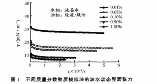 圖1不同質量分數(shù)膠質模擬油的油水動態(tài)界面張力