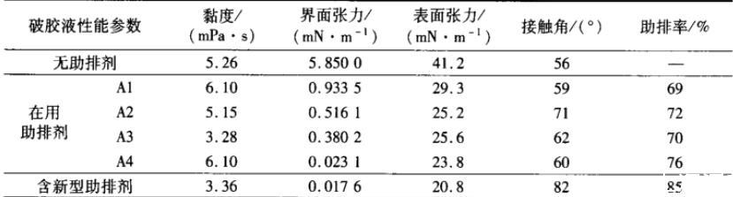 新型助排劑配方組分、對表/界面性能的影響及助排效果(三)