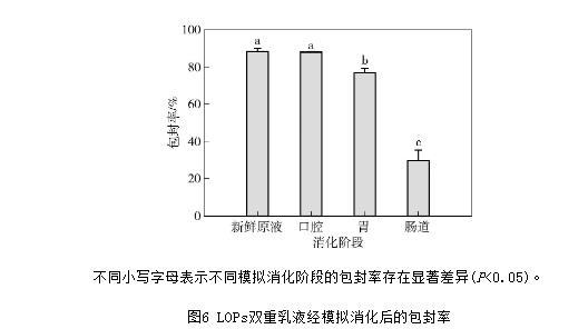 圖6 LOPs雙重乳液經模擬消化后的包封率