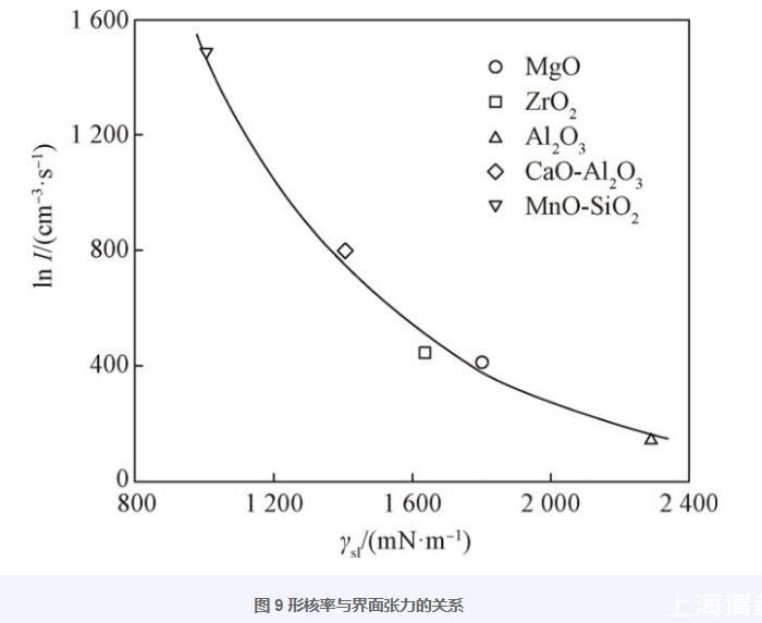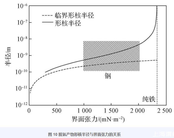 圖10脫氧產(chǎn)物形核半徑與界面張力的關系