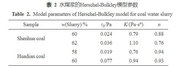 表2水煤漿的Herschel-Bulkley模型參數(shù)
