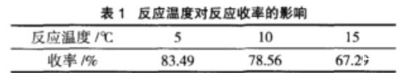 由表1可見,5℃時,反應收率最高,但考慮到5℃以下實驗室現有條件很難達到,因此不再做延伸實驗,選擇最佳反應溫度為5℃。