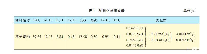 龍泉梅子青釉的釉料配方(質(zhì)量分數(shù))為: 西源瓷土45%、黃壇瓷土20%、獅子籠紫金土3%、石灰石22%、石英10%。該釉配方原料取自龍泉本地瓷土,適用性廣、穩(wěn)定性好、燒成溫度范圍寬,其化學(xué)組成見表1。