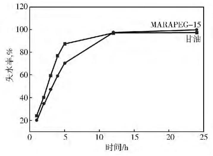 MARAPEG-15和甘油的吸濕性能和保濕性能見圖3、圖4。