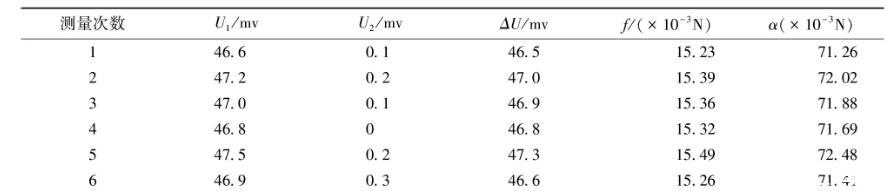 表2原有金屬吊環測量液體的表面張力系數數據表(水溫25℃)