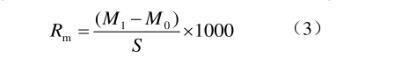 采用浸漬法并稍作改進。藥液配制方法同1.2.2節(jié)。采集蘋果成熟葉片,避開邊緣及褶皺處將葉片打成直徑為3.5 cm的圓形平整葉碟,計算葉碟面積(S)為9.62 cm2。浸漬前,用電子天平讀取葉碟初始質(zhì)量(M0,g),用鑷子夾持葉碟完全浸入藥液3 s后取出,垂直懸置待不再有液滴滴下時讀取載液后質(zhì)量(M1,g),根據(jù)公式(3)計算最大持留量(Rm)(mg/cm2),每處理重復(fù)10次,結(jié)果取平均值。