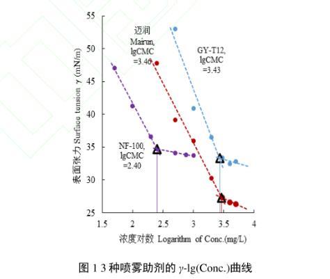 圖1 3種噴霧助劑的γ-lg(Conc.)曲線