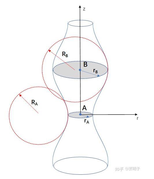 在A點(diǎn),z方向上產(chǎn)生了負(fù)曲率(半徑RA),而r方向上,由于半徑變小,曲率變大。也就是說(shuō),A點(diǎn)上的曲率變化產(chǎn)生了兩個(gè)效果: