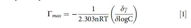 Γmax說明了表面活性劑分子在空氣-水界面上的累積,可以使用吉布吸附方程計算[73]