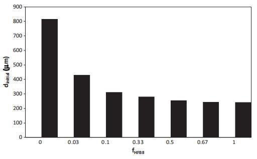 圖8給出了以與圖3相同的HFBII:WPI比率制備的兩種泡沫的初始?xì)馀莩叽纭W钪匾挠^察結(jié)果是,少量HFBII(來自fHFBII 0.03)在很大程度上影響泡沫的初始?xì)馀莩叽纭4送猓坪鯊腤PI主導(dǎo)向HFBII主導(dǎo)的行為轉(zhuǎn)變發(fā)生在fHFBII~=0.2,對應(yīng)于朗繆爾槽中吸附層中觀察到的轉(zhuǎn)變(圖6)。