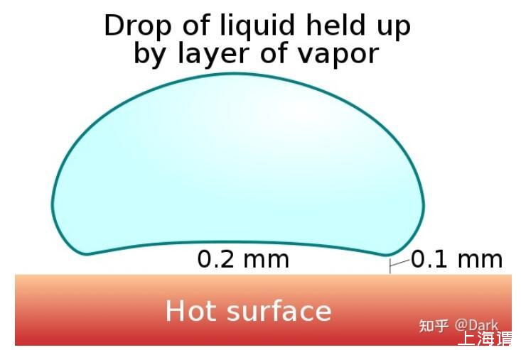 在萊頓弗羅斯特現(xiàn)象下,水珠中跟鐵板接觸的部分會迅速沸騰形成水蒸氣,與此同時水珠尚保持液體的狀態(tài),由于水蒸氣的傳熱比液體水慢得多,蒸氣層阻隔水直接接觸滾燙鐵板并大大降低水滴沸騰的速度。
