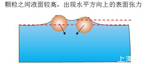 圖7親水疏水顆粒相互使液面變化,打破原來所受表面張力的對稱性,出現相互排斥的表面張力
