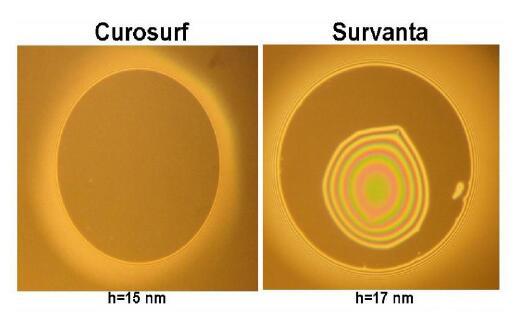 白蛋白抑制外源表面活性劑制劑在空氣/水界面的表面活性。當BSA出現在膜液相中時,Curosurf和Survanta都失去了在單層中保持低最小表面張力和形成黑色泡沫膜的能力。