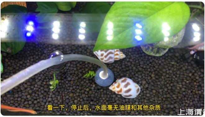 第三種就是用增氧泵或者水妖精,通過產生的氣泡,在水面炸裂,把油膜帶入缸中。這種方法是最值得推薦的,不用額外買油膜處理器,再一個就是增加了水中的溶氧量。