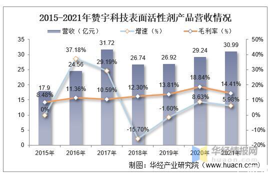 2015-2021年贊宇科技表面活性劑產(chǎn)品營收情況